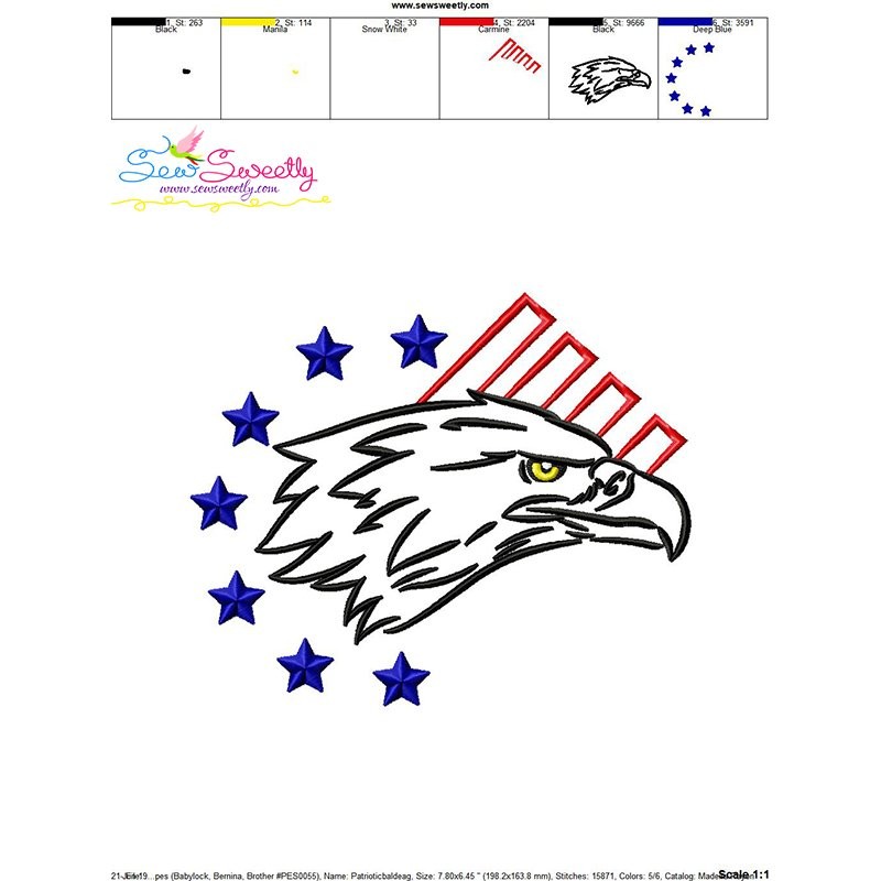 Patriotic Bald Eagle-5 Embroidery Design Pattern-1