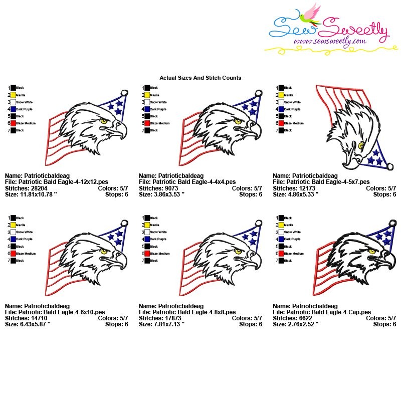 Patriotic Bald Eagle-4 Embroidery Design Pattern-1