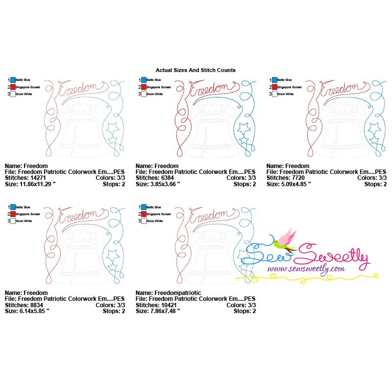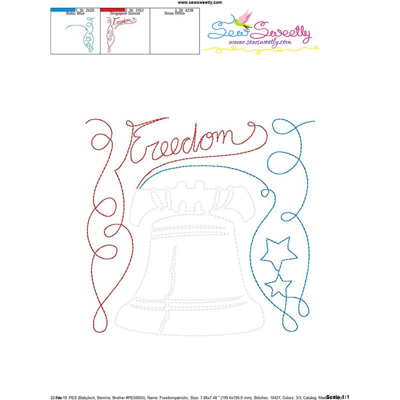 Freedom Patriotic Colorwork Block Machine Embroidery Design Pattern For 4th of July Independence Day.