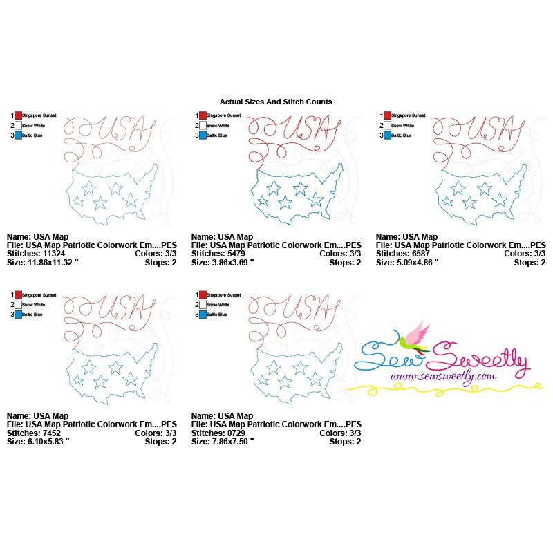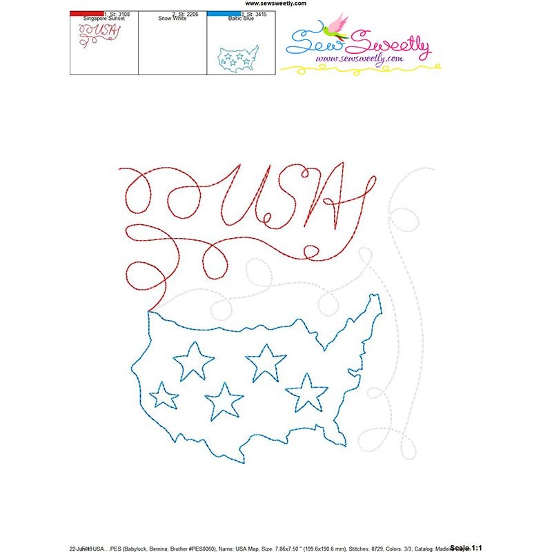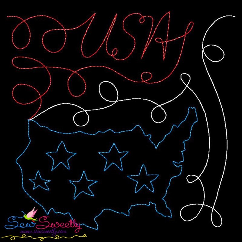 USA Map Patriotic Colorwork Block Machine Embroidery Design Pattern For 4th of July Independence Day.