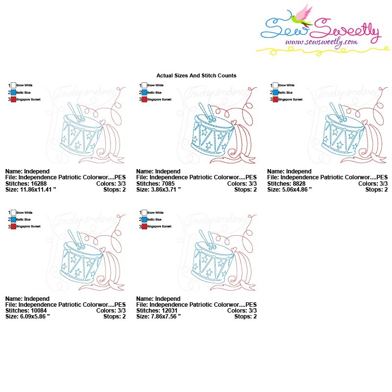 Independence Patriotic Colorwork Block Machine Embroidery Design Pattern For 4th of July Independence Day.