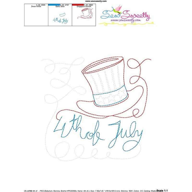 4th of July Patriotic Hat Colorwork Block Machine Embroidery Design Pattern For 4th of July Independence Day.