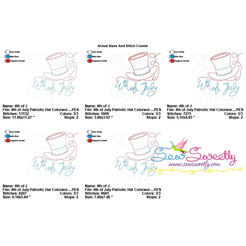 This design set includes 10 beautiful 4th of July machine embroidery designs.