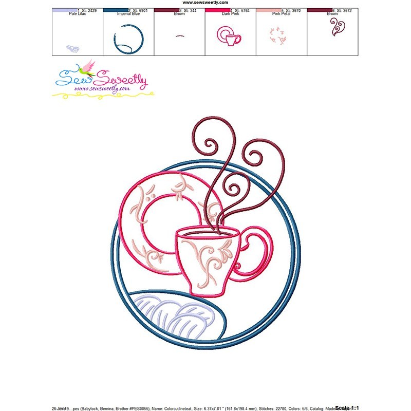 Color Satin Stitches Tea Time-10 Machine Embroidery Design Pattern.