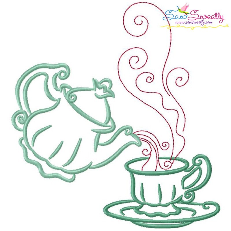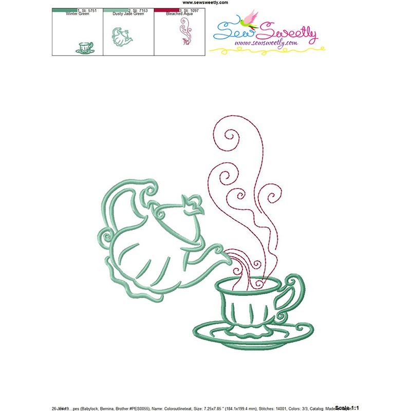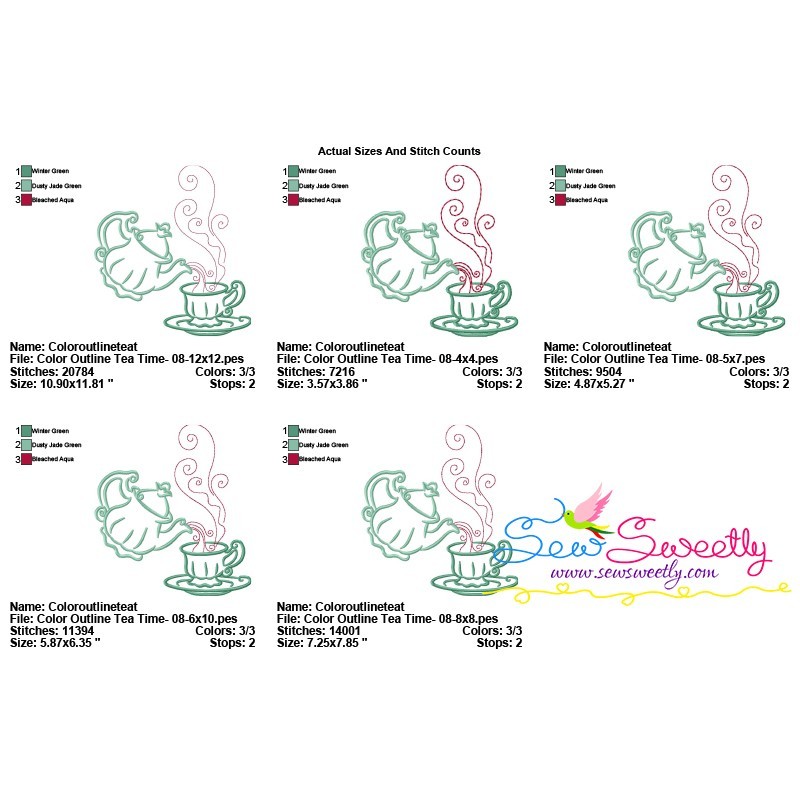 Color Satin Stitches Tea Time-8 Machine Embroidery Design Pattern.