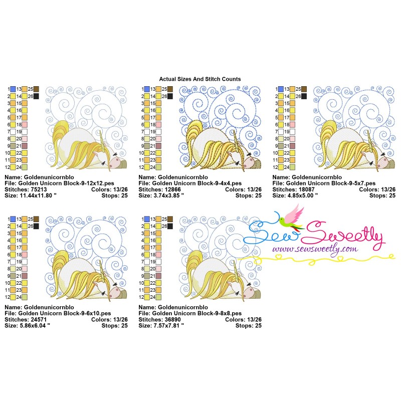 Golden Unicorn Block-9 Machine Embroidery Design Pattern.