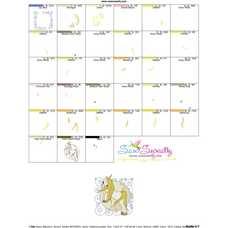 Golden Unicorn Block-7 Embroidery Design Pattern