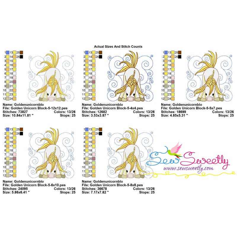 Golden Unicorn Block-5 Machine Embroidery Design Pattern.