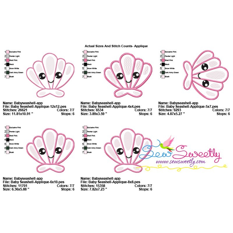 Baby Seashell Machine Embroidery Applique Design Pattern For Summer Season.