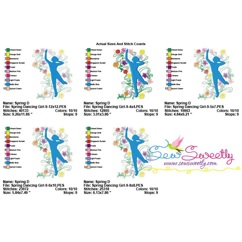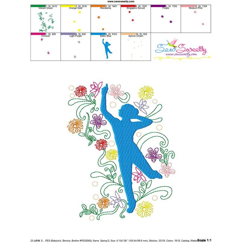 Spring Flowers Dancing Girl-9 Machine Embroidery Design Pattern For Spring And Dancing Projects.