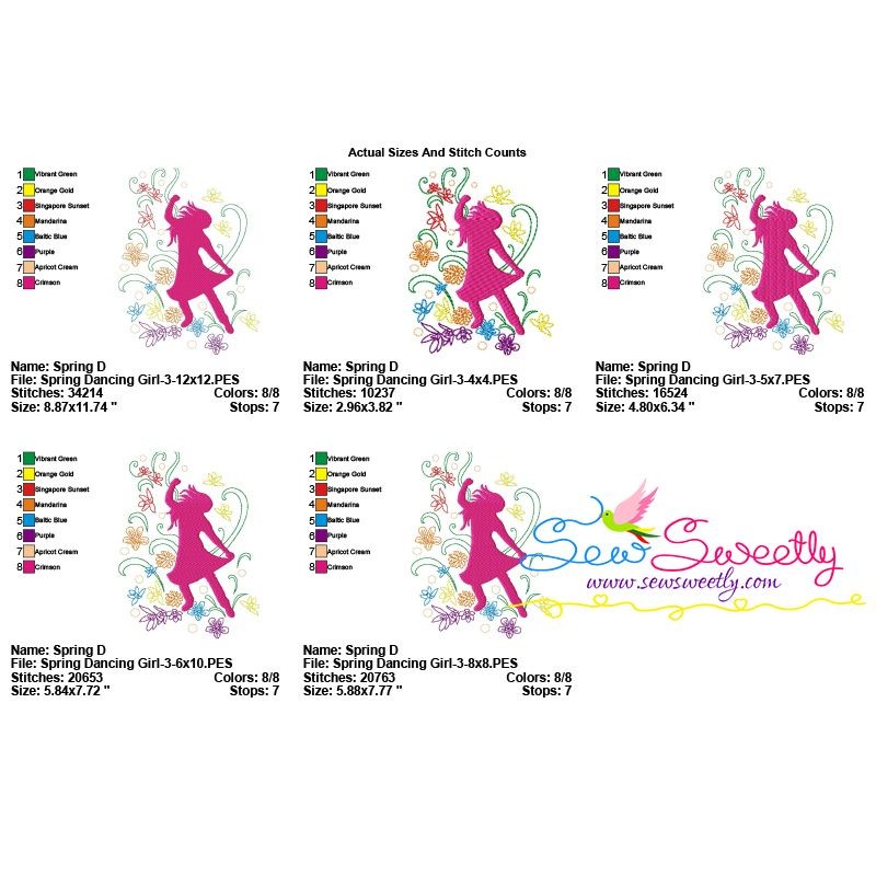 Spring Flowers Dancing Girl-3 Machine Embroidery Design Pattern For Spring And Dancing Projects.