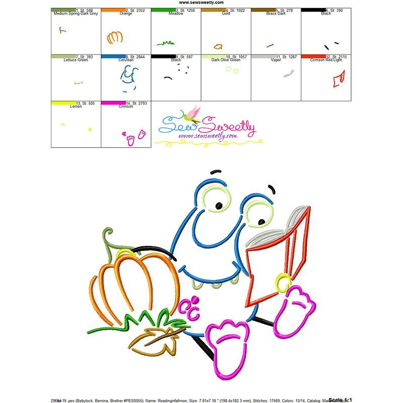 Reading in Fall Monster-9 Embroidery Design Pattern-1