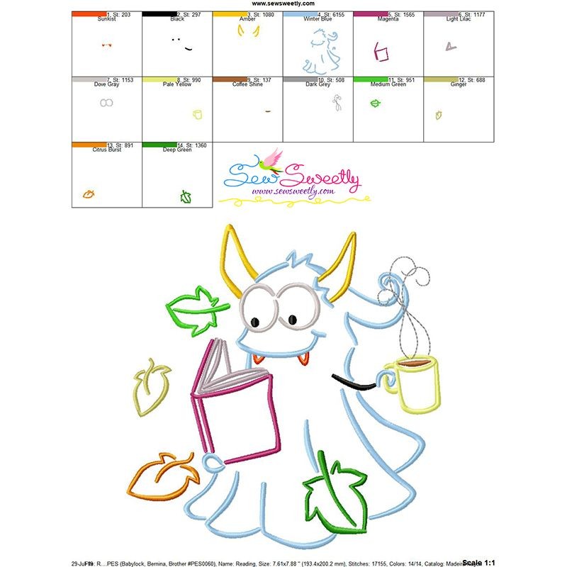 Reading in Fall Monster-1 Embroidery Design...