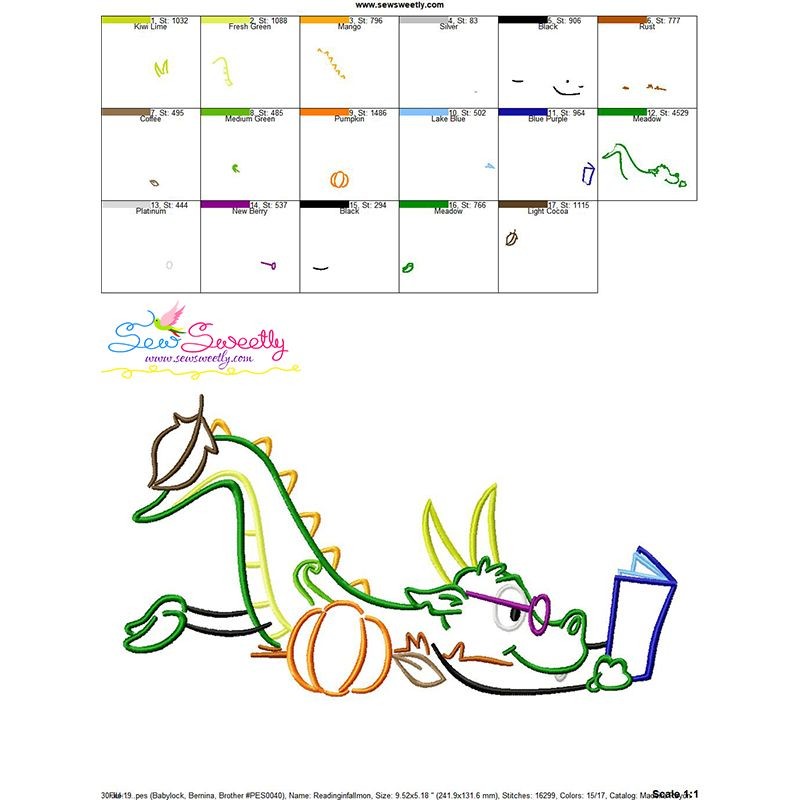Reading in Fall Monster-4 Machine Embroidery Design Pattern For Fall And Back To School Projects.