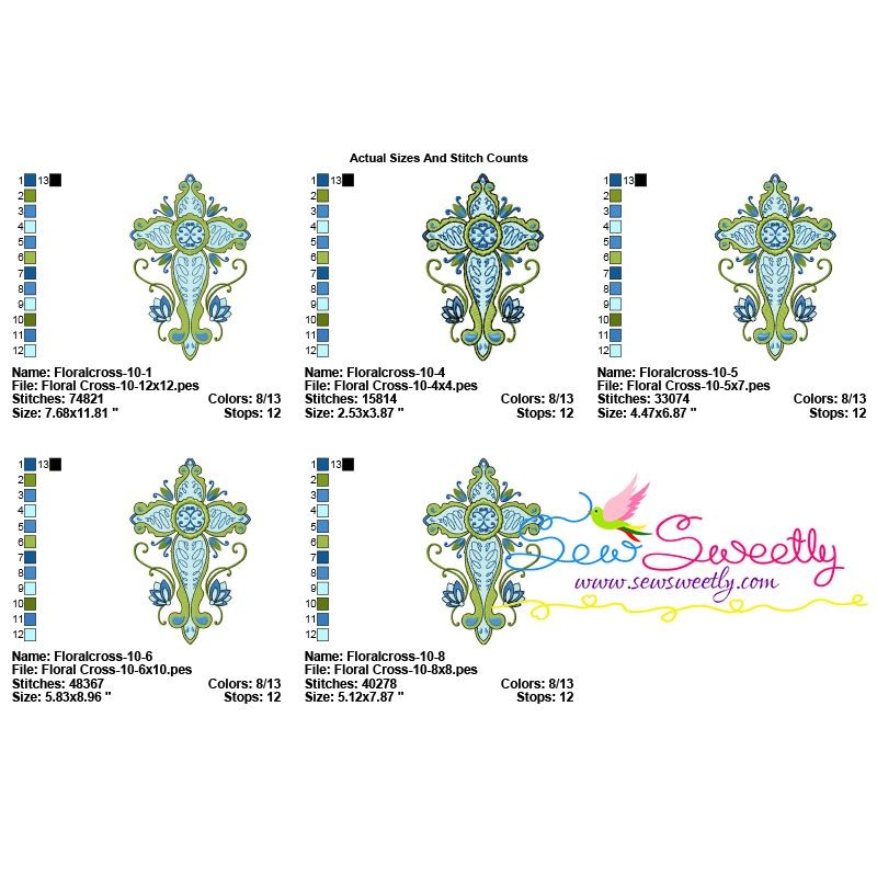 This Embroidery Design Set Includes 10 Beautiful Floral Cross Machine Embroidery Designs.