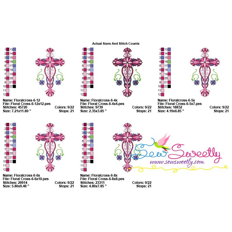 This Embroidery Design Set Includes 10 Beautiful Floral Cross Machine Embroidery Designs.