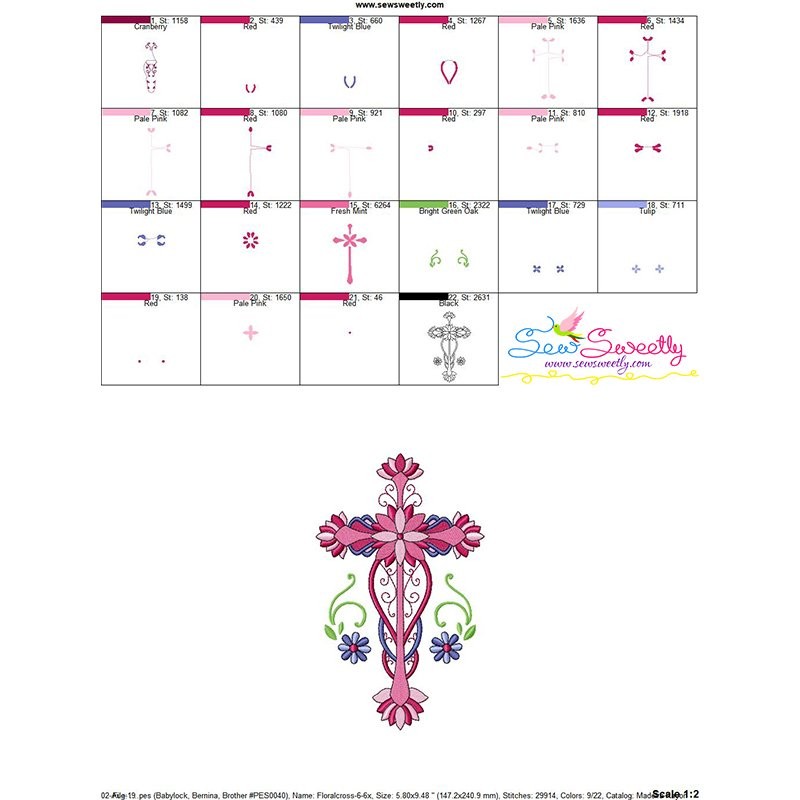 Floral Cross-6 Machine Embroidery Design Pattern For Religious Embroidery Projects.