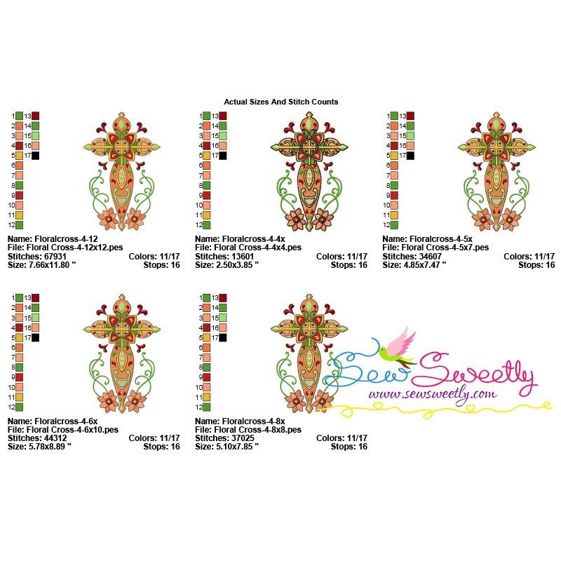 Floral Cross-4 Machine Embroidery Design Pattern For Religious Embroidery Projects.