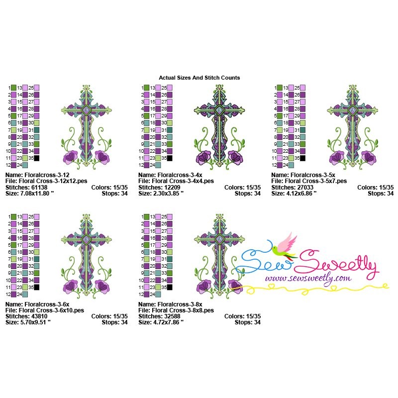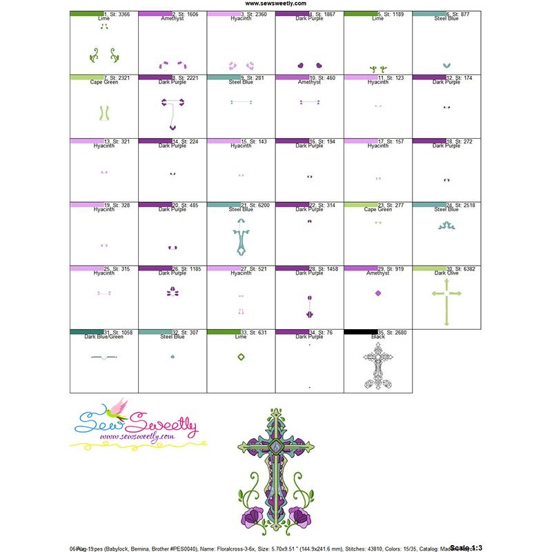 Floral Cross-3 Machine Embroidery Design Pattern For Religious Embroidery Projects.