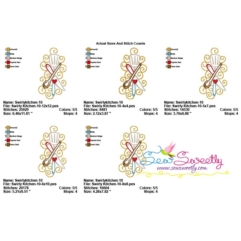 Swirly Kitchen-10 Machine Embroidery Design Pattern For Kitchen Embroidery Projects.