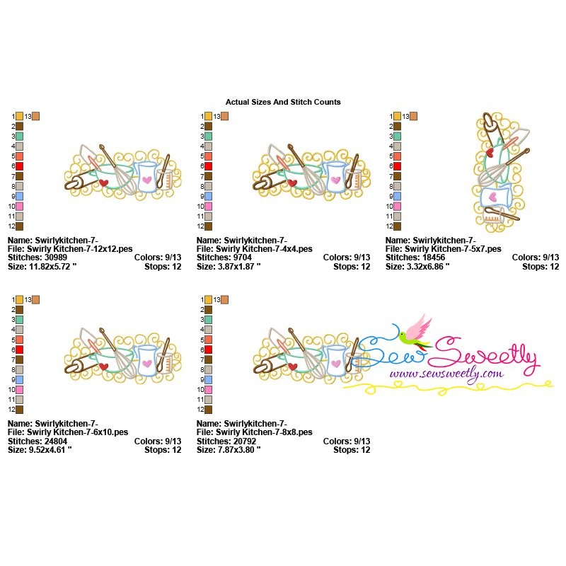 Swirly Kitchen-7 Machine Embroidery Design Pattern For Kitchen Embroidery Projects.