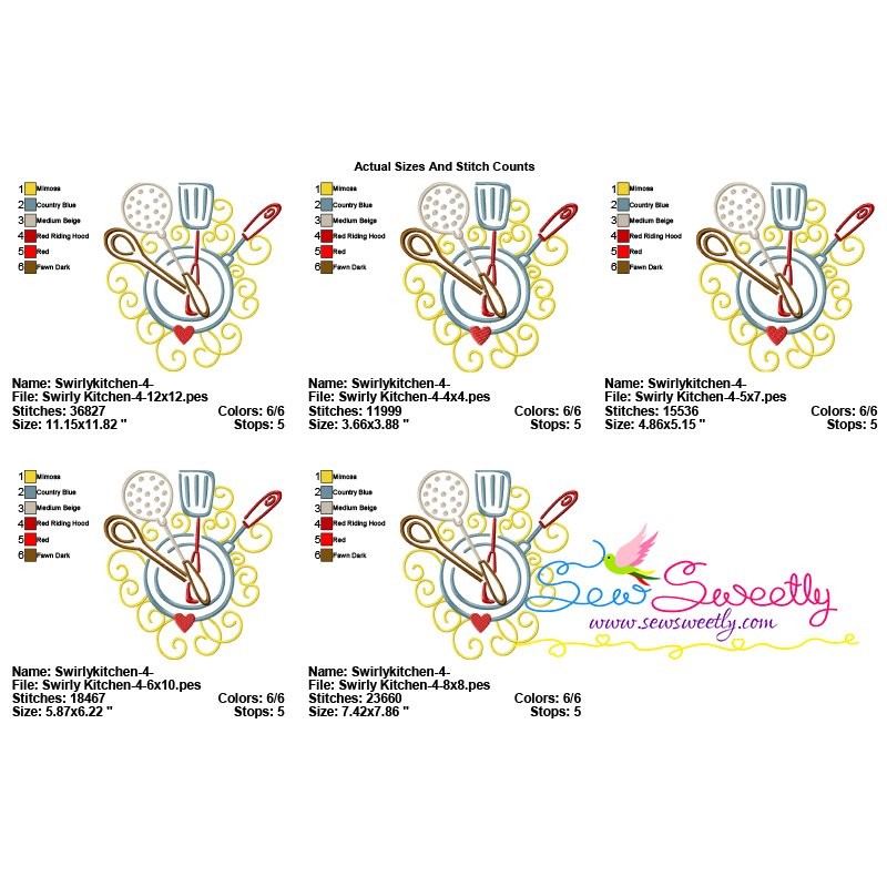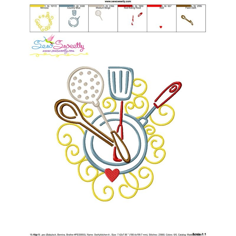 This Embroidery Design Set Includes 10 Beautiful Swirly Kitchen Machine Embroidery Designs.