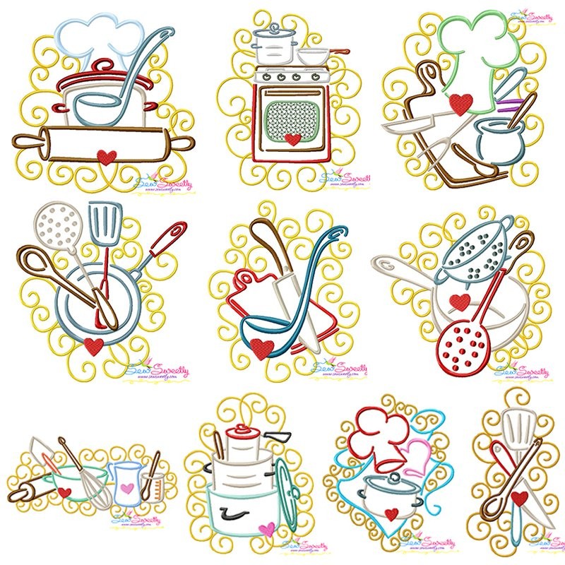 This Embroidery Design Set Includes 10 Beautiful Swirly Kitchen Machine Embroidery Designs.