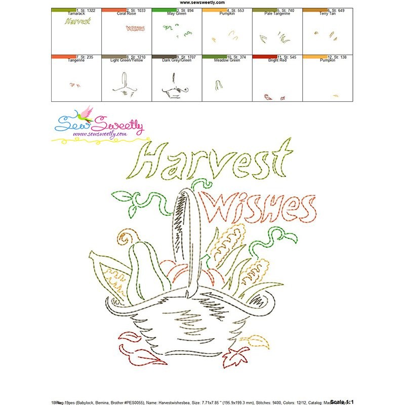 Harvest Wishes Bean/Vintage Stitch Machine Embroidery Design Pattern For Fall/Autumn Embroidery Projects.