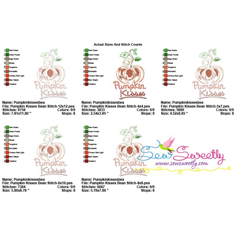 Pumpkin Kisses Bean/Vintage Stitch Machine Embroidery Design Pattern For Fall/Autumn Embroidery Projects.