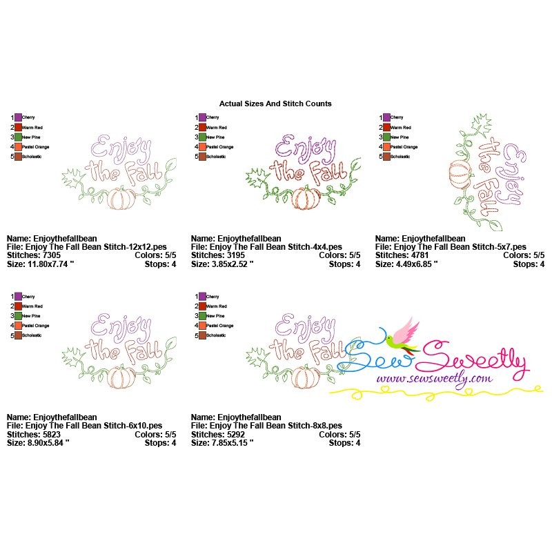 Enjoy The Fall Bean/Vintage Stitch Machine Embroidery Design Pattern For Fall/Autumn Embroidery Projects.