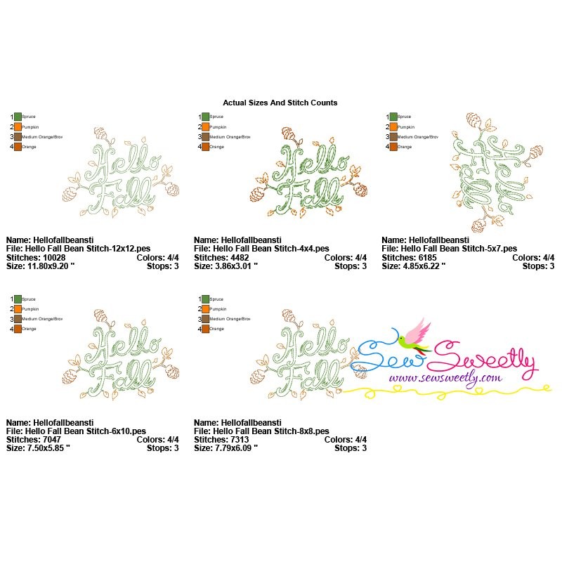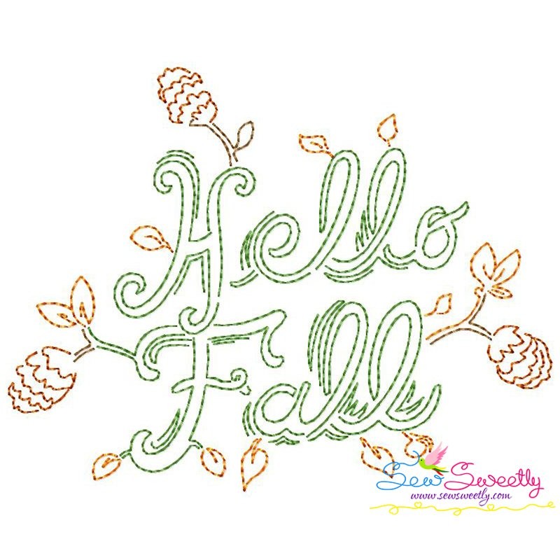 Hello Fall Bean/Vintage Stitch Machine Embroidery Design Pattern For Fall/Autumn Embroidery Projects.