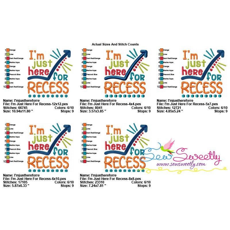 I'm Just Here For Recess Machine Embroidery Design Pattern-1