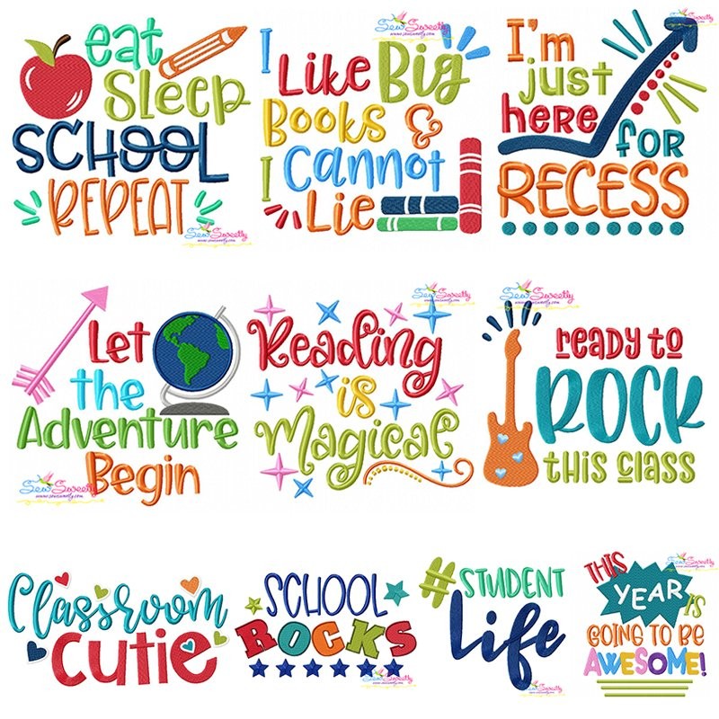 This Embroidery Design Set Includes 10 Beautiful Lettering Machine Embroidery Designs For Back To School Projects.
