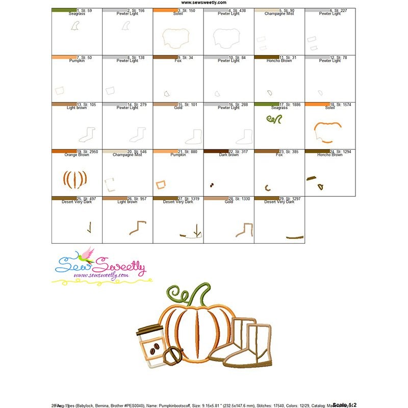 Pumpkin Boots Coffee Applique Design Pattern-3