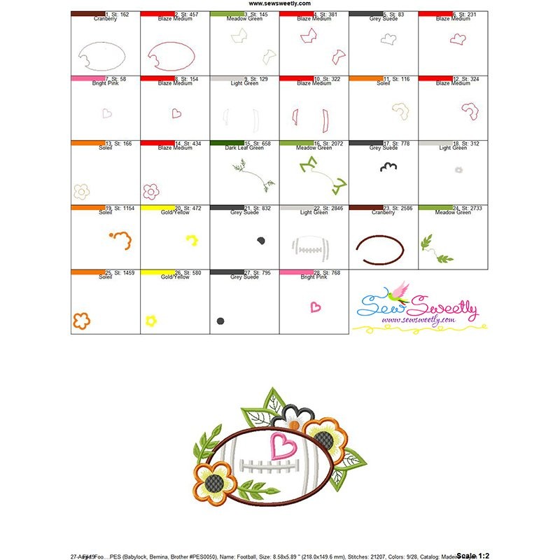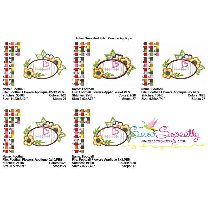 Football Flowers Machine Embroidery Applique Design Pattern For Football Sports Embroidery Projects.