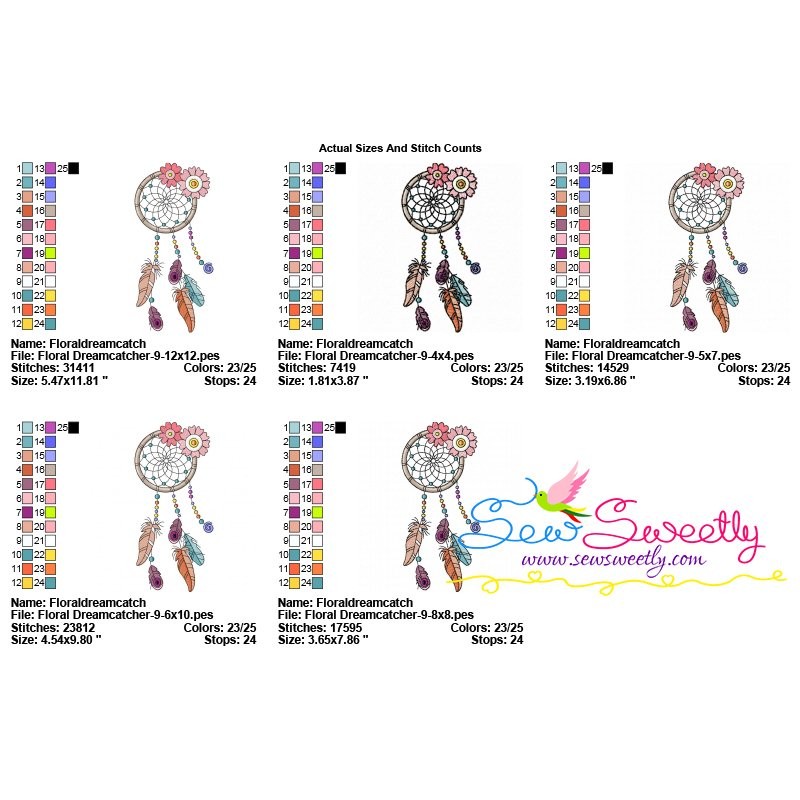 Floral Dream Catcher-9 Machine Embroidery Design Pattern- Best For Pillow Covers.