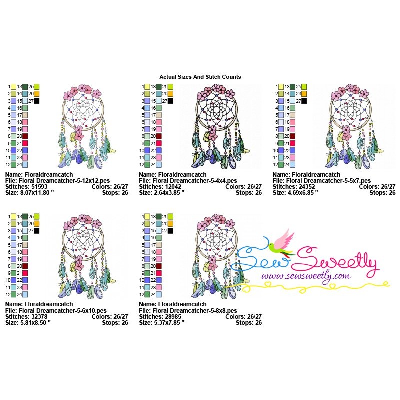 Floral Dream Catcher-5 Machine Embroidery Design Pattern- Best For Pillow Covers.