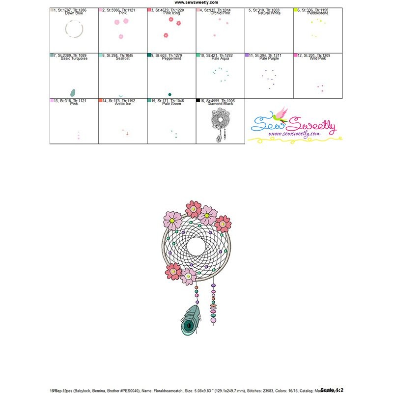 Floral Dream Catcher-2 Machine Embroidery Design Pattern.