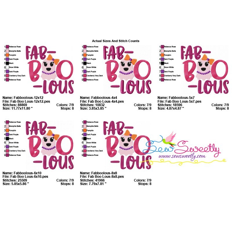 Fab Boo Lous Halloween Lettering Machine Embroidery Design Pattern.