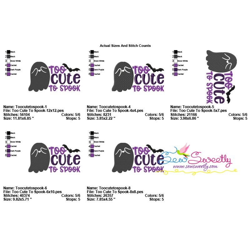 Too Cute To Spook Halloween Lettering Embroidery Design Pattern-3