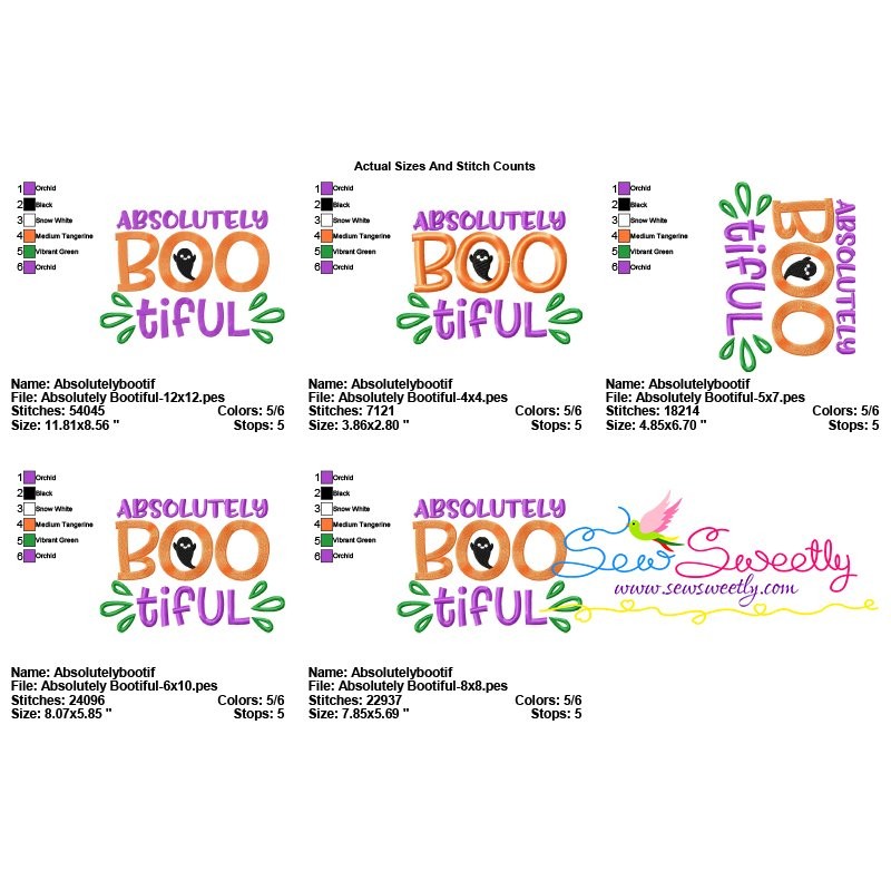 Absolutely Bootiful Halloween Lettering Machine Embroidery Design Pattern.