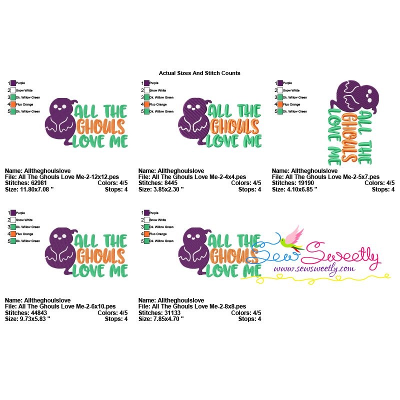 All The Ghouls Love Me-2 Halloween Lettering Machine Embroidery Design Pattern.