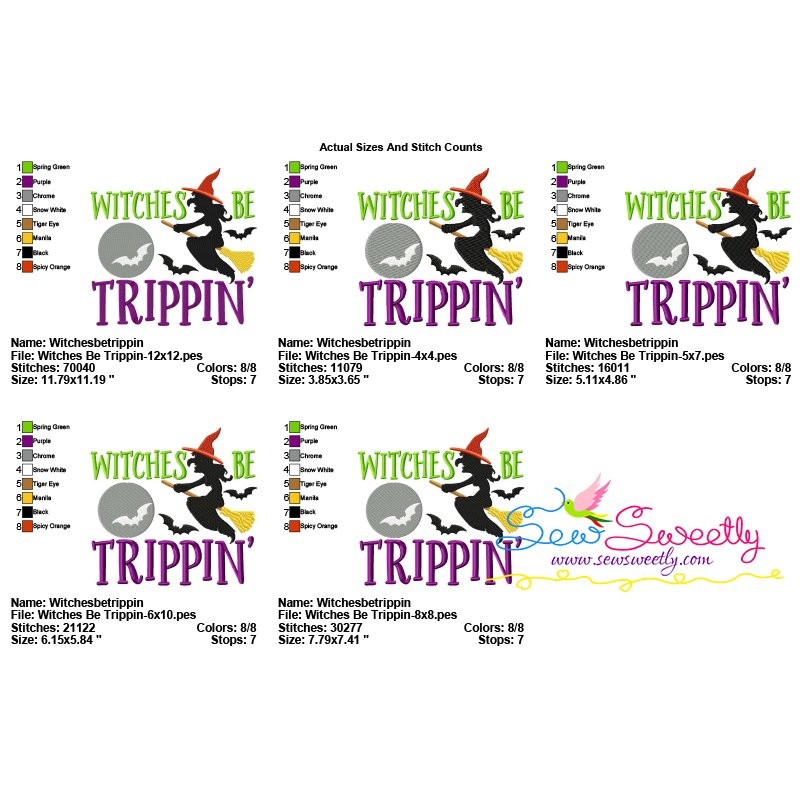 Witches Be Trippin Halloween Lettering Machine Embroidery Design Pattern.