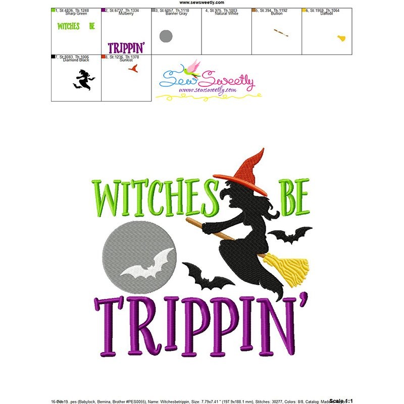Witches Be Trippin Halloween Lettering Embroidery Design Pattern-1