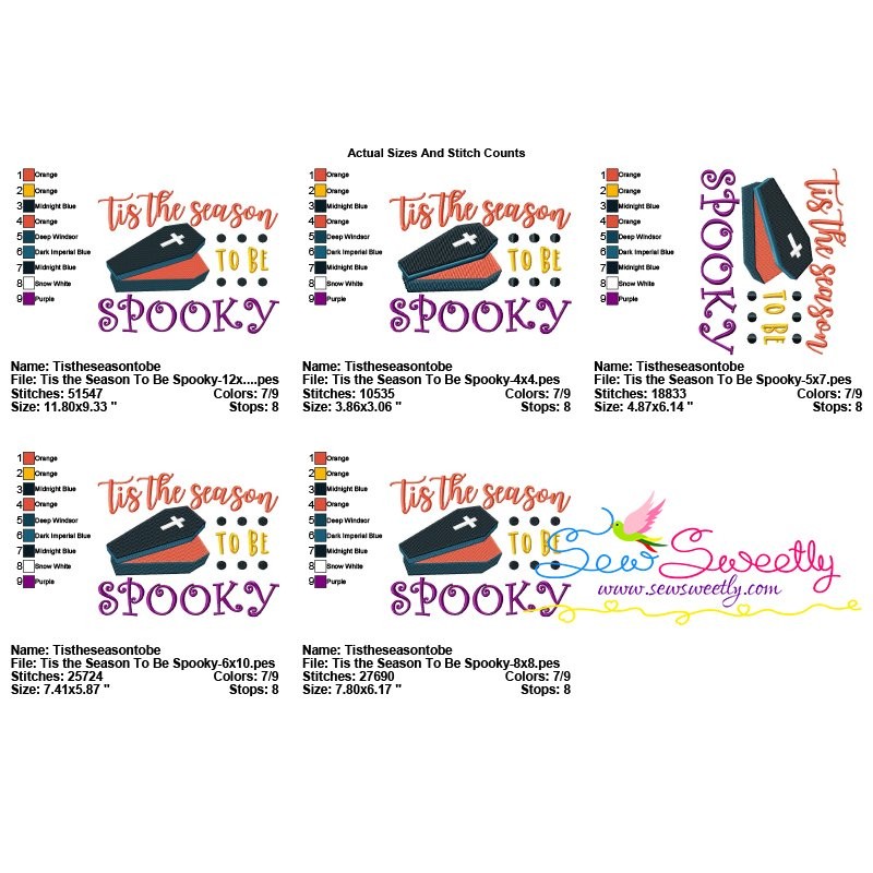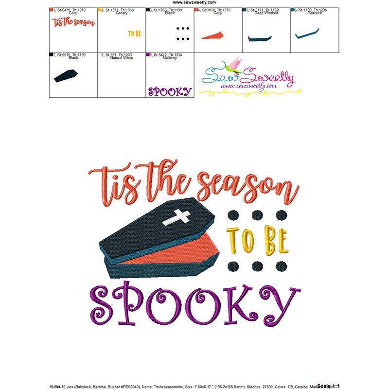 Tis the Season To Be Spooky Halloween Lettering Embroidery Design Pattern