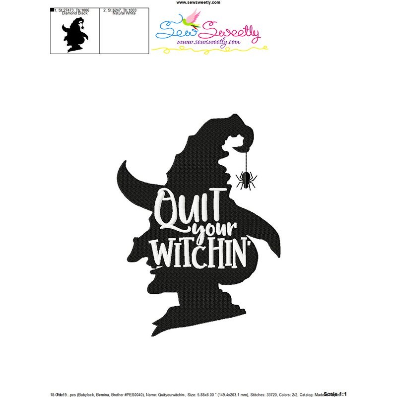 Quit Your Witchin-2 Halloween Lettering Embroidery Design Pattern
