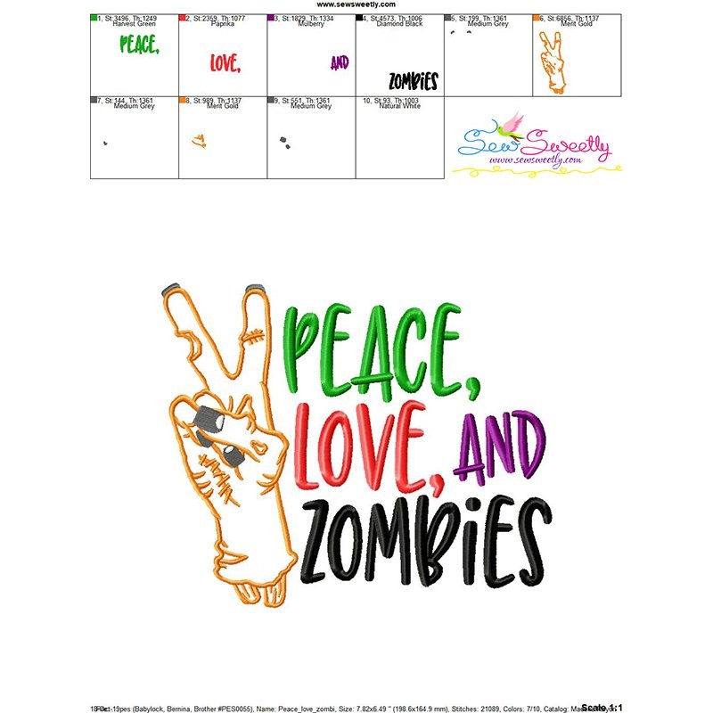 Peace Love Zombies Halloween Lettering Embroidery Design Pattern-1