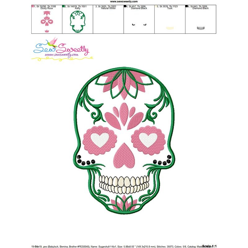 Sugar Skull-1 Halloween Embroidery Design Pattern-1