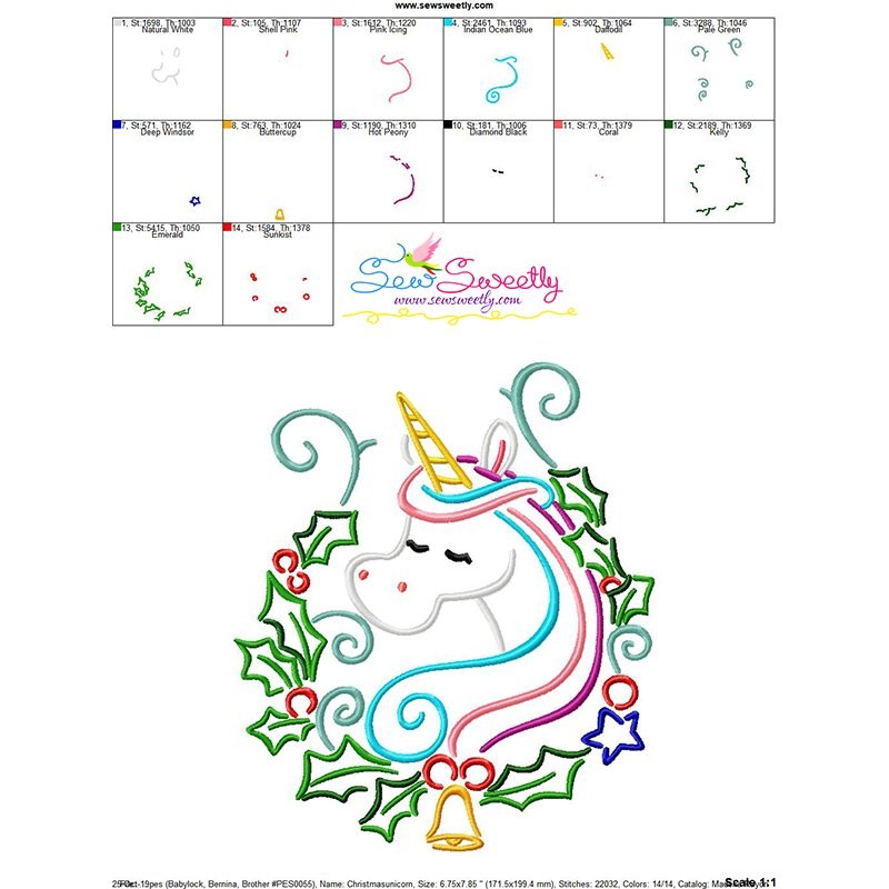 Christmas Unicorn Bell-3 Embroidery Design Pattern-1