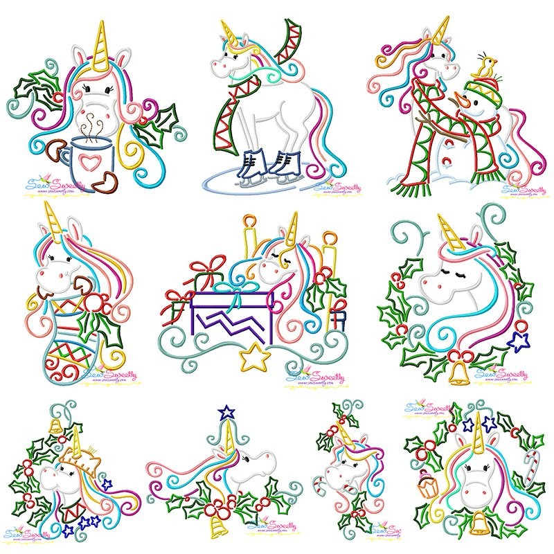 This Embroidery Design Set Includes 10 Beautiful Christmas Unicorns Embroidery Designs.